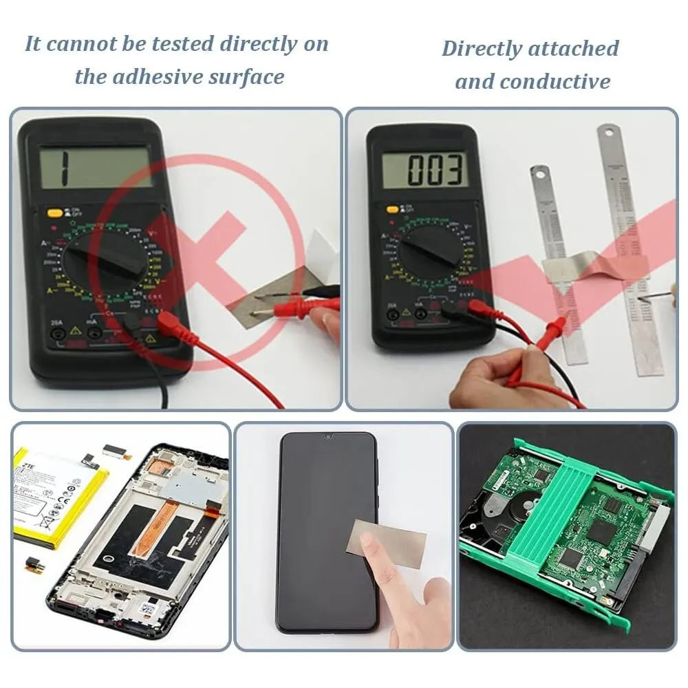 🌟 What it is - Our conductive fabric tape features single-sided shielding adhesive to dissipate electrical charges and prevent electromagnetic interference from laptops and LCD screens.