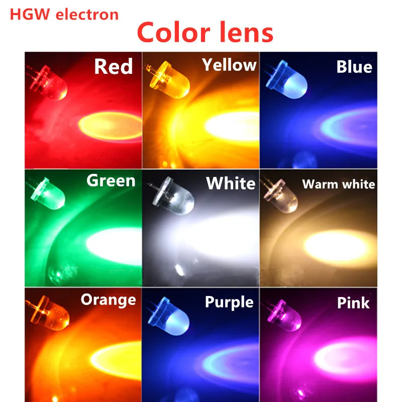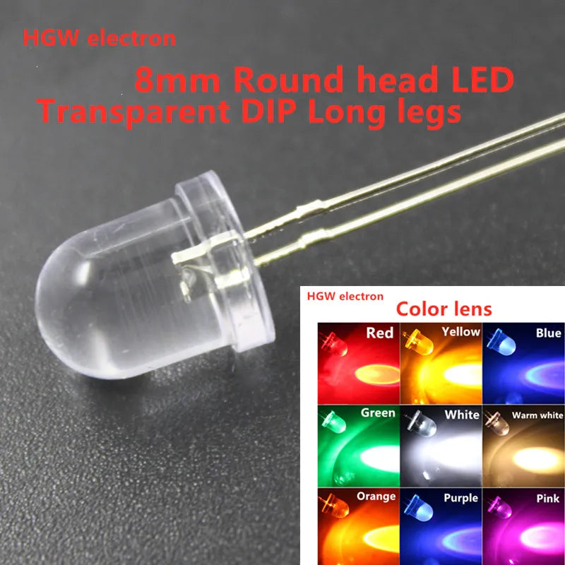 20Pcs 8MM Round head transparent LED Diode Kit 3V Set Light Emitting Warm White Red Green Yellow Blue RGB Fast Slow LED KIT