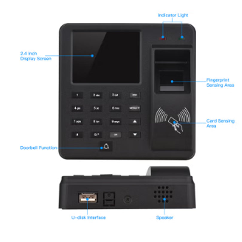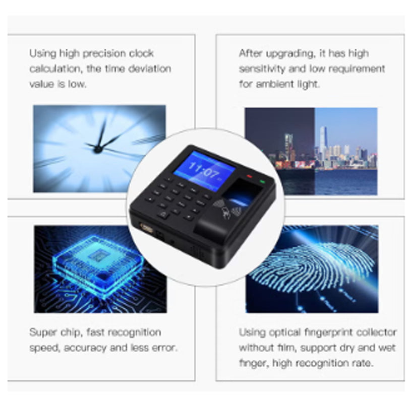 Introducing the Access Control Time Attendance Machine, equipped with three recognition modes - fingerprint, password, and ID card - for efficient employee tracking. With a fast 1 sec/time recognition speed and 1000pcs fingerprint storage, this machine offers a simple operation process and intuitive display screen.